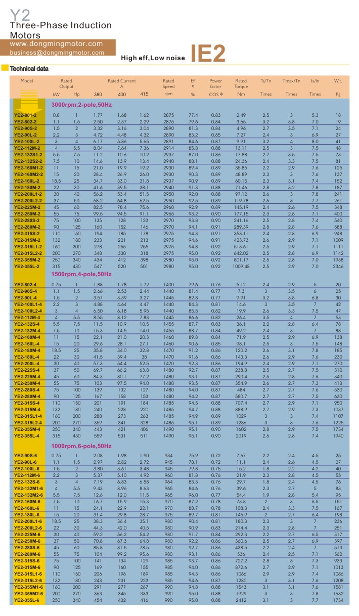 Y2 Series three-phase induction motor, adopting the national uniform design, has reached the international advanced level of 90's. It can replace Y series induction motor and possess sophisticated features such as new construction, good-looking appearance, low vibration, low noise, economization on power and materials consumption, etc.