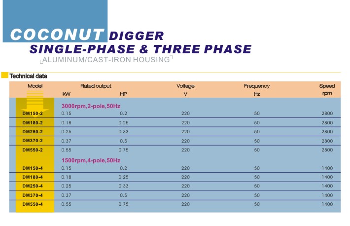 series aluminum/cast-iron housing single-phase & three-phase Coconut Digger