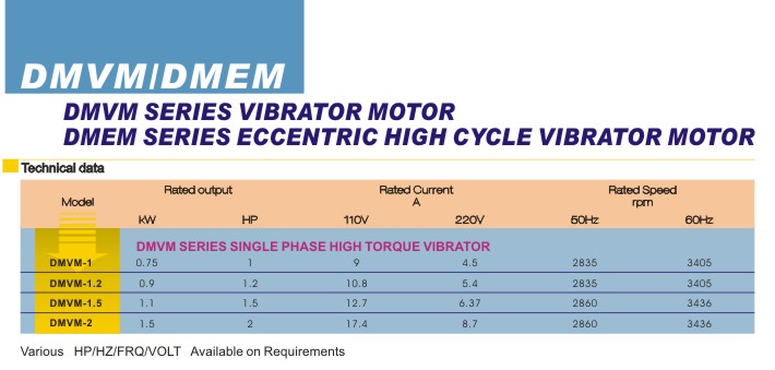 DMVM Series vibrator motor are enclosed in aluminum housing and simple construction, which with pleasant appearances resulted from latest design. This series of vibrator motors are made of selectec quality materials supported by advanced techniques and science, and achieves the reputation of high performance, realiable operation, while remian the easy mantainance, low noises, little vibration and light weight.DMVM series vibrator motors are suitable for the occasion where big starting torque and high overload are required. It serves perfectly with other equipments operated on construction site and other hard working environments, such as motivating the concrete vibrator.