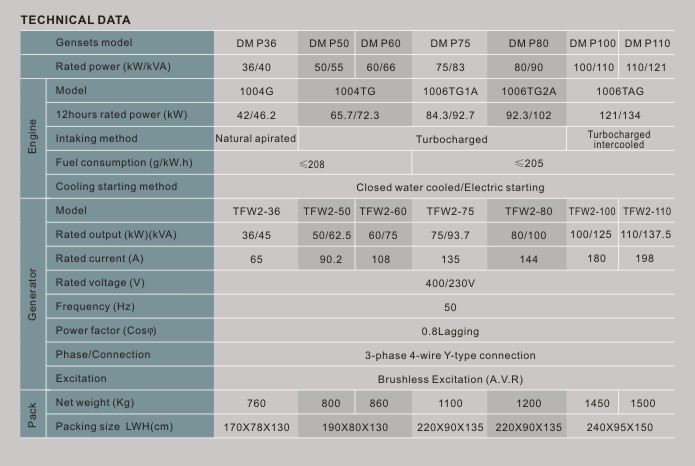 DM-PERKINS series diesel generating sets. Adopt PERKINS engines produced by England PERKINS CO., LTD. The PERKINS engines are 4-cycle, cooled by fan radiator, adopt shelly fuel filter&oil filter cleaner, dry air cleaner, beautiful appearance, fine quality, reliable capability. (Could be made as soundproof silent type)