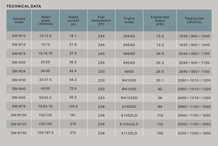 DM-WEICHAI HUAFENG series diesel generator sets adopt 4105&6105 series engines produced by HuaFeng Engine Co., Ltd. It is one joint-venture invested by three companies in domestic and overseas, engaging in production, trade and scientific research; 4105&6105 series engines have more fine performances including low oil consumption, high reliability, easy to start etc. (Could be made as soundproof silent type)